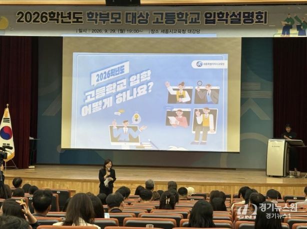 [경기뉴스원/경기뉴스1] | 세종특별자치시교육청은 9월 29일에 교육청 2층 강당에서 고등학교 입학 안내 학부모 설명회를 개최하고 중학교 3학년 학생 전체를 대상으로 고등학교 입학 정보 꾸러미를 제공할 예정이라고 밝혔다.