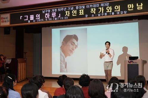 [경기뉴스원/경기뉴스1] | 부산 남구는 지난 9월 30일 남구청 개청 50주년을 맞이해, 구청 1층 대강당에서 '제20기 등대빛 아카데미' 3강으로 배우 겸 작가 차인표 씨를 초청해 특별강연을 열었다.