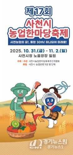 [경기뉴스원/경기뉴스1] | 사천시의 대표적인 가을축제인 ‘제17회 사천시 농업한마당축제’가 오는 10월 31일부터 11월 2일까지 3일간 사천시청 노을광장 일원에서 열린다.
