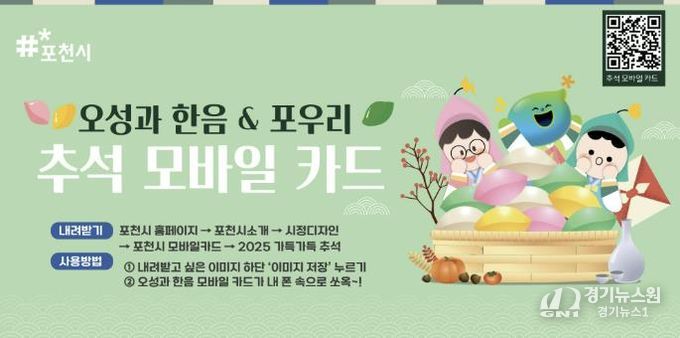 [경기뉴스원/경기뉴스1] | 포천시는 지난 1일 민족 최대 명절 추석을 맞아 시민들이 감사와 따뜻한 마음을 손쉽게 전할 수 있도록 ‘추석 모바일 카드’를 무료 배포했다.