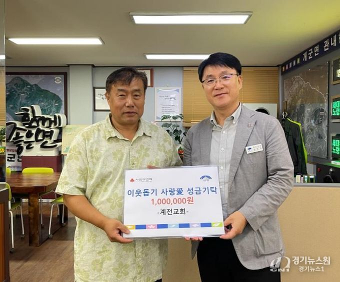 [경기뉴스원/경기뉴스1] | 양평군 개군면은 지난 1일, 개군면 계전 2리에 위치한 계전교회가 추석 명절을 앞두고 지역 내 어려운 이웃을 돕기 위한 성금 100만 원을 기탁했다고 밝혔다.
