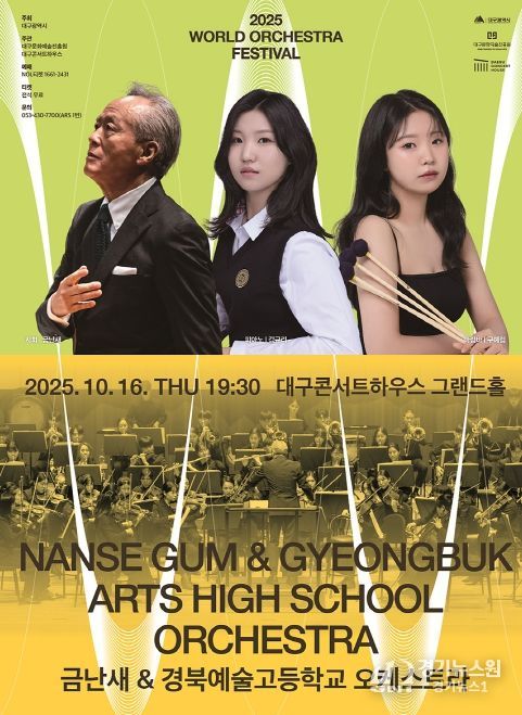 [경기뉴스원/경기뉴스1] | 대구콘서트하우스는 오는 10월 16일 오후 7시 30분, 그랜드홀에서 2025 월드오케스트라페스티벌의 일환으로 ‘금난새 · 경북예고오케스트라’ 공연을 선보인다.