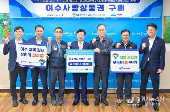 [경기뉴스원/경기뉴스1] | 여수시는 GS칼텍스가 추석 명절을 맞아 ‘여수사랑상품권 10억 원’을 구매해 지역경제 활성화와 2026여수세계섬박람회 성공 개최를 기원하며 지역 소상공인과의 상생 행보를 이어가고 있다고 밝혔다.