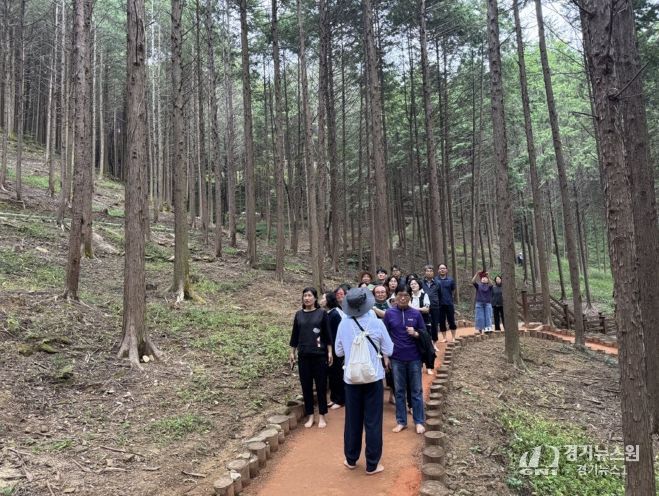 이날 행사에는 평거동·이현동 주민 등 30여 명이 참여했으며, 산림치유지도사 2명의 안내에 따라 ▲맨발 걷기 ▲건강 호흡 ▲숲 명상 ▲싱잉볼 체험 ▲아로마 프로그램 등 치유 프로그램이 운영됐다.