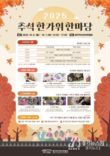[경기뉴스원/경기뉴스1] | 광주역사민속박물관은 추석 명절을 맞아 오는 6일부터 7일까지 이틀간 ‘2025년 추석 한가위 한마당’을 개최한다.