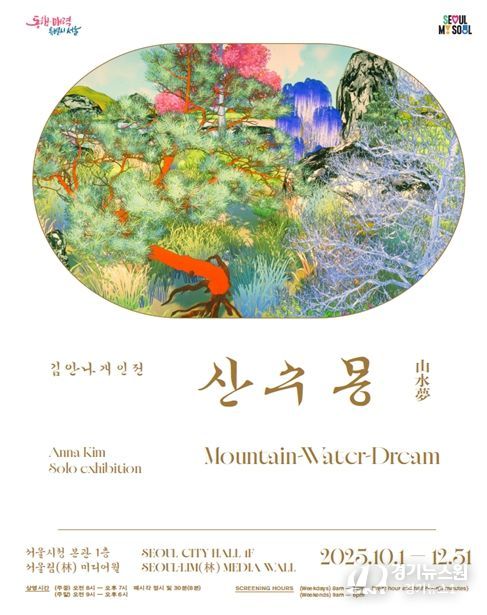 [경기뉴스원/경기뉴스1] | 서울시는 2025. 10월 1일부터 12월 31일까지 서울시청 본관 1층 로비 ‘서울림(林)’ 미디어월에서 미디어아트 신작 《산수몽(山水夢)》 전시를 개최한다고 밝혔다.