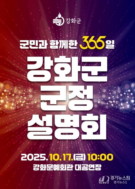 [경기뉴스원/경기뉴스1] | 강화군은 오는 10월 17일 오전 10시 강화문예회관에서 “군민과 함께한 365일, 강화군 군정 설명회”를 개최한다.