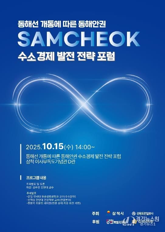 [경기뉴스원/경기뉴스1] | 대한민국 대표 수소 도시인 삼척시가 동해선 중심의 수소경제 벨트 구축 방안과 수소경제 파급효과를 통한 삼척 관광 발전 전략을 모색하기 위한 ‘수소경제 발전전략 포럼’을 개최한다고 밝혔다.