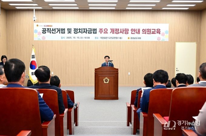 [경기뉴스원/경기뉴스1] | 경상남도의회 지난 15일 도의회 의원회관 도민공연장에서 전체 도의원을 대상으로 '공직선거법' 및 '정치자금법' 주요 개정사항 및 사례 교육을 실시했다고 밝혔다.