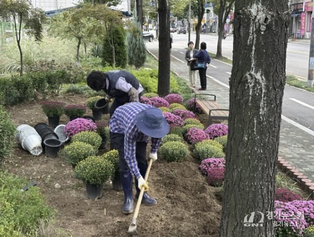 [경기뉴스원/경기뉴스1] | 시흥시 정왕본동 행정복지센터는 지난 10월 14일 지역주민과 방문객에게 쾌적한 도시환경을 제공하기 위해 역전로 화단에 가을꽃을 식재하고 주변 환경 정화 활동을 진행했다.