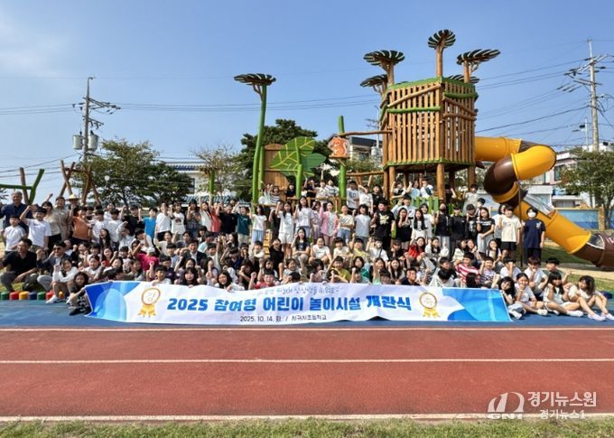 [경기뉴스원/경기뉴스1] | 제주도교육청 서귀서초등학교는 14일 학생과 보호자, 교직원이 함께 만든 참여형 어린이 놀이시설 개관식을 개최했다.