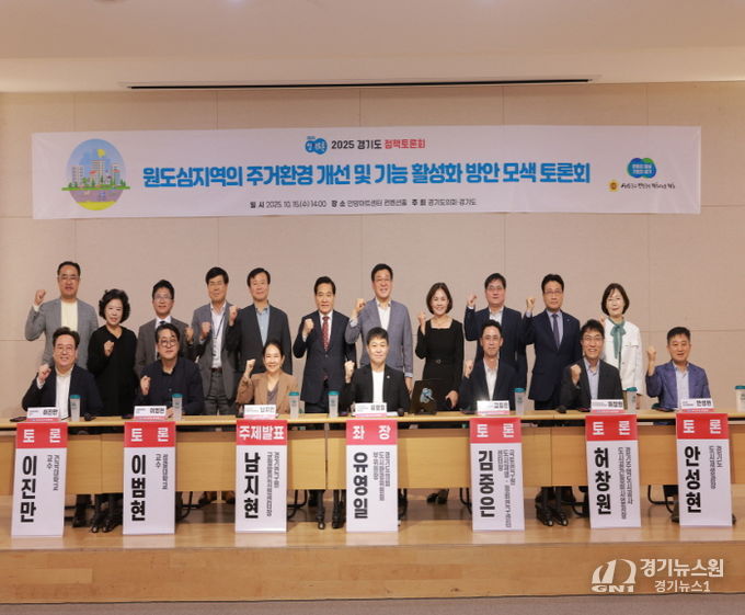 [경기뉴스원/경기뉴스1] | 경기도의회 도시환경위원회 유영일 부위원장(국민의힘, 안양5)이 좌장을 맡은 '원도심지역의 주거환경 개선 및 기능 활성화 방안 모색 토론회'가 10월 15일 안양아트센터 컨벤션홀에서 개최됐다. 이번 토론회는 경기도와 경기도의회가 공동으로 주최하는 ‘2025 경기도 정책토론회’의 일환으로 개최됐다.