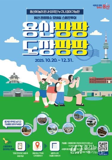 [경기뉴스원/경기뉴스1] | 서울 용산구가 오는 20일부터 12월 31일까지 용산의 주요 관광명소를 모바일로 즐길 수 있는 ‘용산 팡팡! 도장 팡팡! 2025 용산구 관광명소 모바일 스탬프투어’를 운영한다.