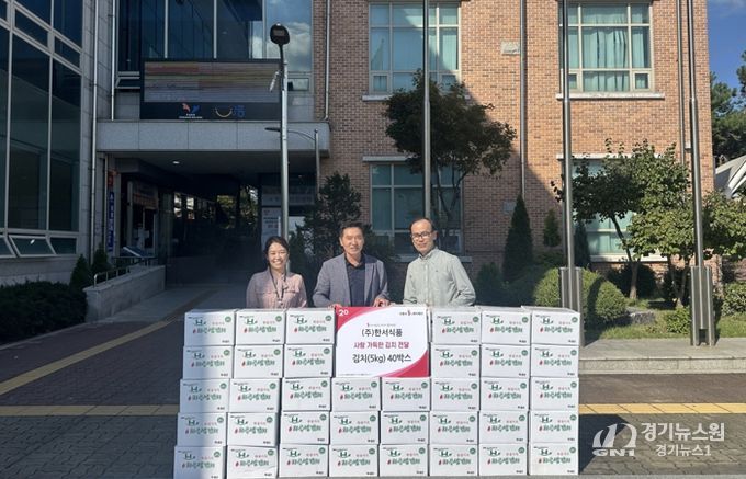 [경기뉴스원/경기뉴스1] | 시흥시 정왕본동에 있는 ㈜한서식품은 지난 10월 16일 정왕본동 행정복지센터(동장 박래천)의 어려운 이웃을 위해 김치(5kg) 40상자를 기부했다.