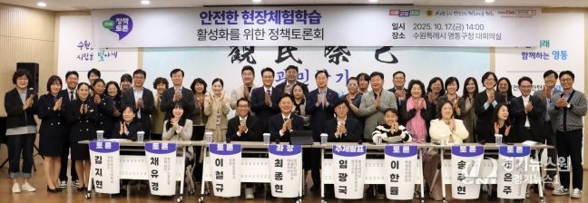[경기뉴스원/경기뉴스1] | 경기도의회 더불어민주당 최종현 대표의원(수원7)은 17일 영통구청 대회의실에서 열린 ‘안전한 현장체험학습 활성화’ 정책토론회에서 좌장을 맡아, 학교 현장의 안전한 현장체험학습을 위해 학부모·교사·학생·지자체의 역할을 함께 모색했다.