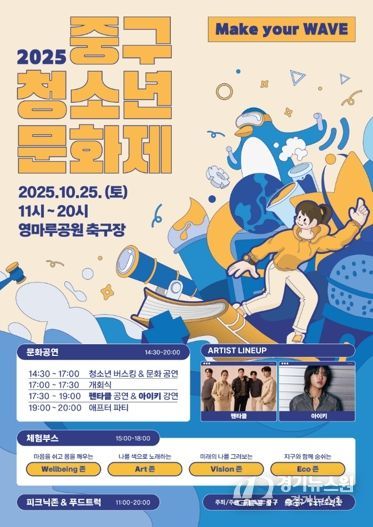 인천시 중구는 오는 25일 영마루공원(영종대로 77) 축구장 일대에서 ‘2025 중구청소년문화제’을 개최한다.