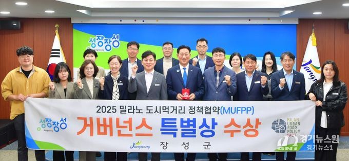 [경기뉴스원/경기뉴스1] | 장성군이 14일부터 17일까지 4일간 이탈리아 밀라노에서 열린 ‘2025 밀라노 도시먹거리정책협약(MUFPP) 글로벌 포럼’에서 ‘거버넌스 부문 특별상’을 수상했다.