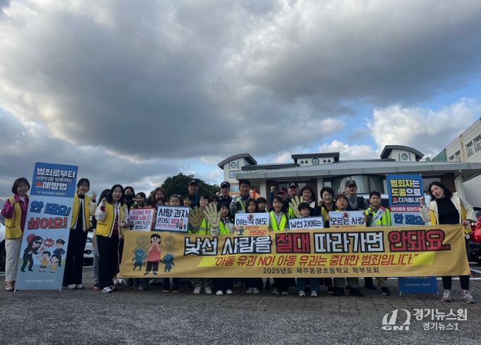 [경기뉴스원/경기뉴스1] | 제주도교육청 동광초등학교는 27일 등굣길에 학부모회와 전교어린이회, 교직원, 동부경찰서가 함께 참여한 어린이 유괴예방 캠페인을 실시했다.