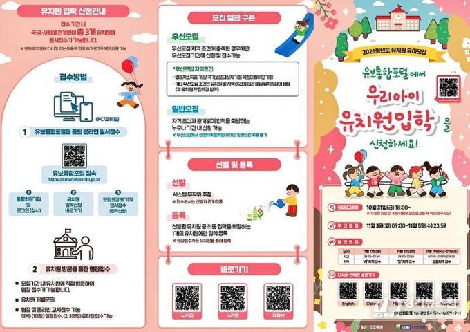 [경기뉴스원/경기뉴스1] | 울산광역시교육청은 11월 3일 오전 9시부터 유치원입학관리시스템‘유보통합포털에서 2026학년도 공사립 유치원 신입생 모집을 시작한다.