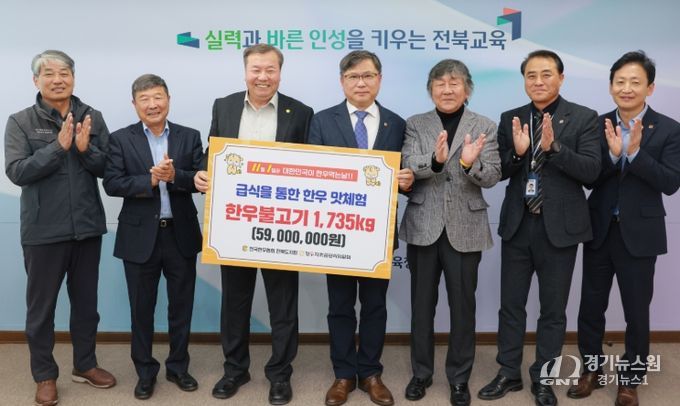 [경기뉴스원/경기뉴스1] | 전북특별자치도교육청과 (사)전국한우협회 전북도지회는 3일 도교육청 5층 접견실에서 ‘학교급식 한우 맛 체험’ 기증서 전달식을 개최했다.