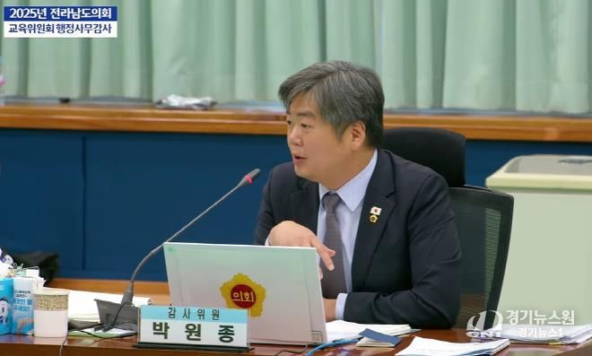 [경기뉴스원/경기뉴스1] | 전라남도의회 교육위원회 박원종 의원(더불어민주당·영광1)은 지난 11월 7일 열린 시·군 교육지원청 행정사무감사에서 교권보호위원회를 비롯한 각종 위원회 운영 실태를 지적하며, “교권 보호는 선택이 아니라 의무이며, 지원청이 무관심하면 교사를 지켜줄 아무런 장치도 없다”고 강하게 질타했다.