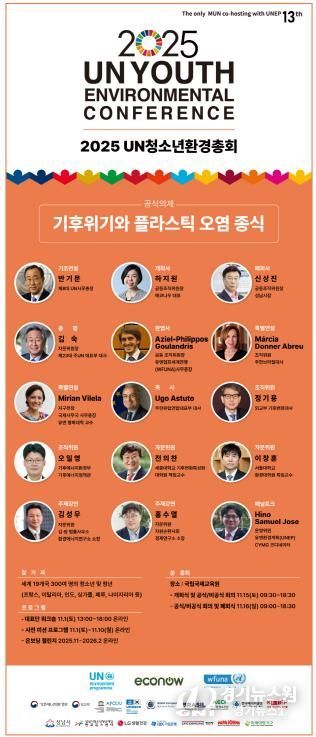 [경기뉴스원/경기뉴스1] | 성남시청소년청년재단 판교유스센터와 환경단체 사단법인 에코나우가 공동 주관하는‘2025 UN청소년환경총회’본 총회가 오는 11월 15일부터 16일까지 이틀간 성남시 분당구에 위치한 국립국제교육원에서 열린다.