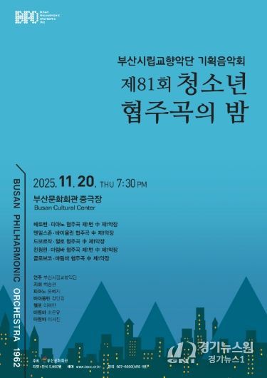 [경기뉴스원/경기뉴스1] | 부산시립교향악단의 기획음악회 『제81회 청소년 협주곡의 밤』 무대가 오는 11월 20일(목) 오후 7시 30분 부산문화회관 중극장에서 펼쳐진다.