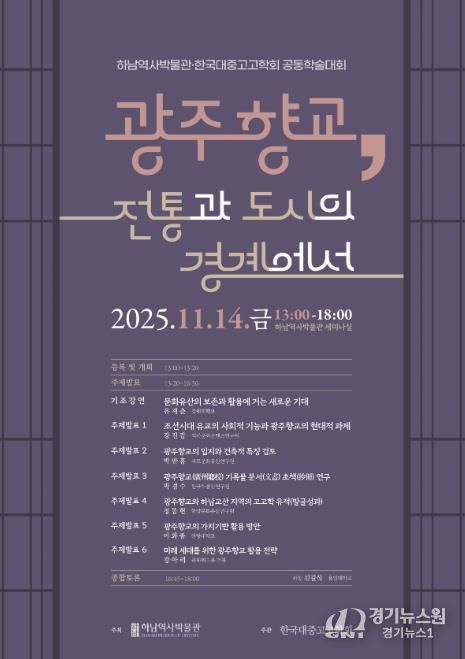 [경기뉴스원/경기뉴스1] | 하남역사박물관과 한국대중고고학회가 '광주향교, 전통과 도시의 경계에서'를 주제로 공동학술대회를 개최한다.