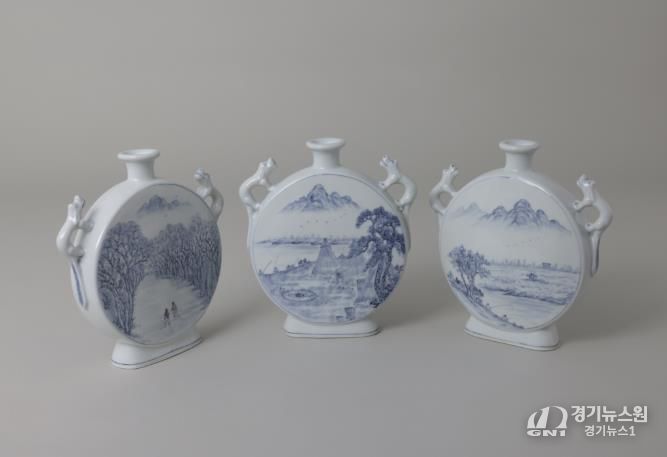 [경기뉴스원/경기뉴스1] | 여주시 도예명장 석담(昔潭) 최병덕의 제5회 개인전 ‘여주 팔경을 펼치다’가 여주도자문화센터 2층 전시관에서 성황리에 진행되고 있다. 이번 전시는 10월 17일부터 12월 31일까지로 여주팔경과 여주시 읍면동의 이야기를 전통 청화백자에 담은 작품들을 선보인다.