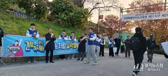 [경기뉴스원/경기뉴스1] | 강릉교육지원청은 11월 13일 2026학년도 대학수학능력시험을 맞아 김홍규 강릉시장, 심오섭·김용래 강원특별자치도의원, 강릉교육지원청 부서장들과 함께 지역 내 시험장을 찾아 수험생을 응원했다.