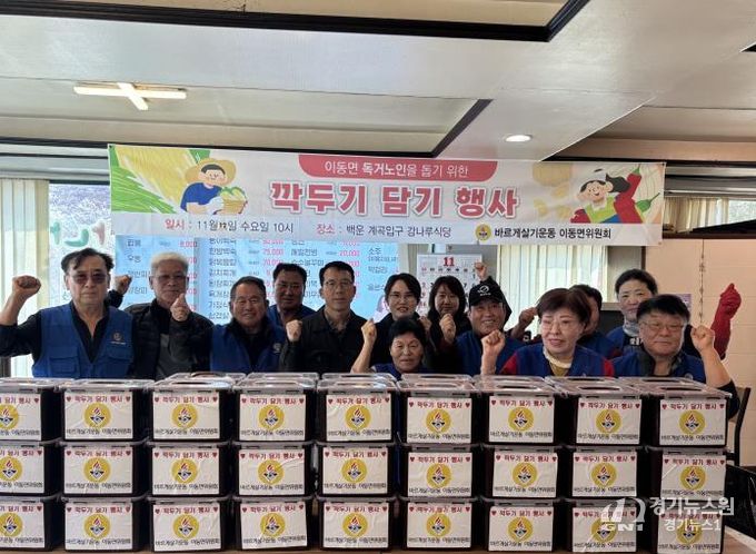 [경기뉴스원/경기뉴스1] | 포천시 바르게살기운동 이동면위원회는 지난 12일 이동면 관내 독거어르신들의 따뜻한 겨울나기를 돕기 위해 ‘깍두기 담기 나눔 행사’를 진행했다.