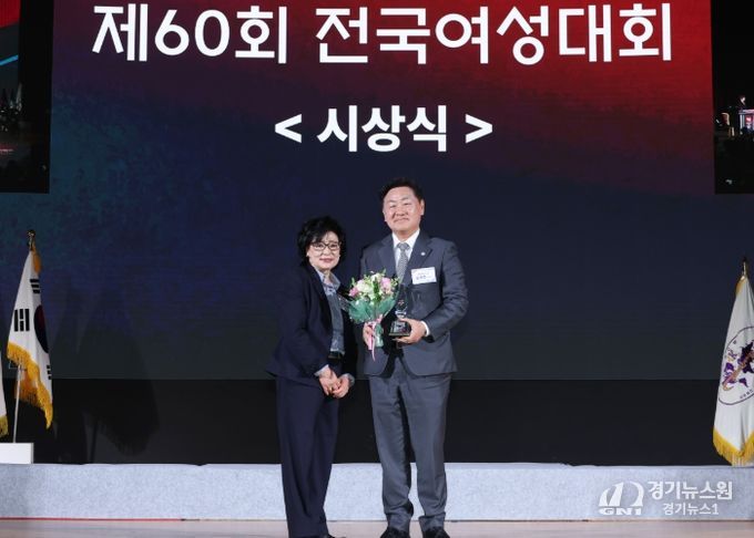 [경기뉴스원/경기뉴스1] | 김관영 전북특별자치도지사가 18일 서울 코엑스에서 열린 ‘제60회 전국여성대회’에서 ‘우수지방자치단체장상’을 수상했다.
