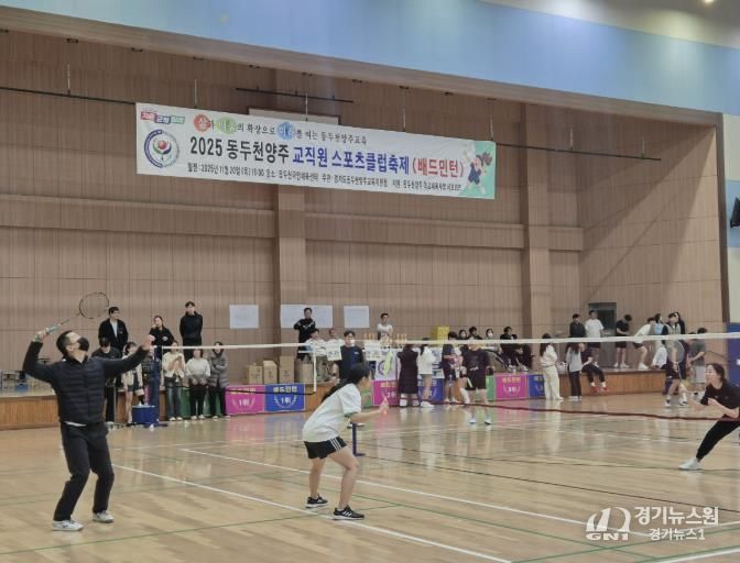 [경기뉴스원/경기뉴스1] | 동두천양주교육지원청는 11월 20일, 동두천국민체육센터에서 관내 초·중·고 34개 학교 교직원 218명이 참여한 ‘2025년 동두천양주 교직원 스포츠클럽축제 배드민턴 경기’를 개최했다. 이번 행사는 교직원의 건강 증진과 더불어 학교 간 소통과 협력을 강화하기 위해 마련됐으며, 다양한 클럽이 참여해 활기찬 경쟁과 화합의 시간을 만들어냈다.