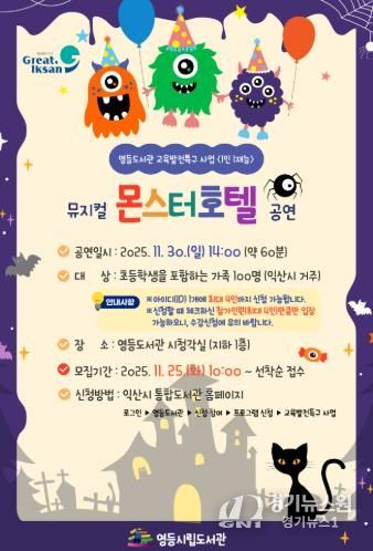 [경기뉴스원/경기뉴스1] | 익산시는 오는 30일 오후 2시 영등도서관에서 어린이 뮤지컬 '몬스터 호텔'을 선보인다.