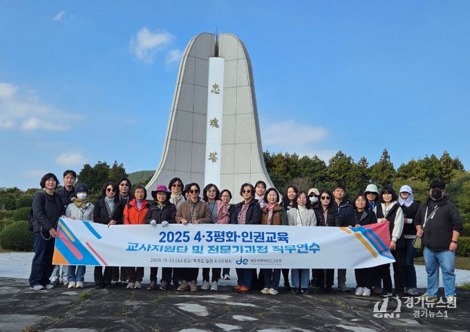 [경기뉴스원/경기뉴스1] | 제주특별자치도교육청은 22일 제주4·3 유적지 일원에서 도내 교원 25명을 대상으로 ‘2025년 4·3 평화·인권교육 교사지원단 및 전문가과정 직무연수’를 운영했다.