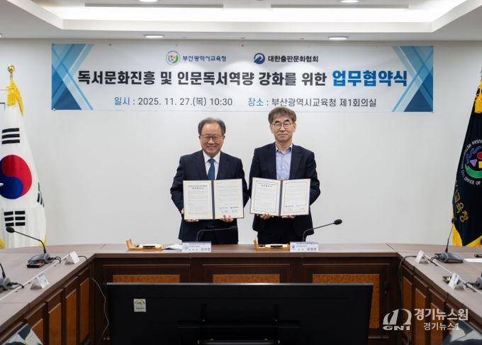 [경기뉴스원/경기뉴스1] | 부산광역시교육청은 27일 오전 부산교육청에서 대한출판문화협회와 독서문화 진흥을 위한 업무협약을 체결했다고 밝혔다.