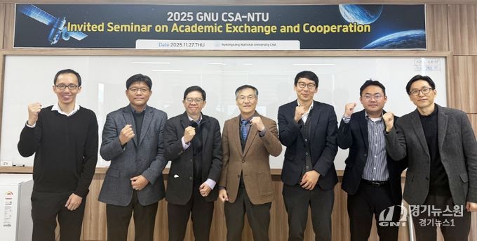 [경기뉴스원/경기뉴스1] | 경상국립대학교(GNU·총장 권진회) 우주항공대학(CSA·학장 허기봉)은 11월 27일 가좌캠퍼스 항공우주산학협력관(407동)에서 싱가포르 난양공과대학교(NTU, Nanyang Technological University)의 우주항공 분야 우수 교원을 초청해 ‘2025년 GNU CSA-NTU 우수교원 초청 교류협력 세미나’를 개최했다.