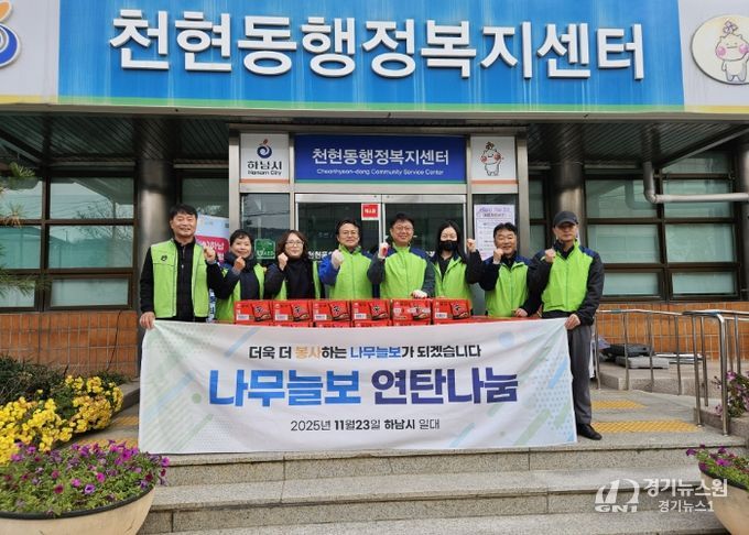 [경기뉴스원/경기뉴스1] | 직장인 봉사단체 나무늘보는 하남시지역사회보장협의체와 협력하여 천현동 일대에 따뜻한 겨울나기를 위한 생필품 연탄 1천장과 라면 60박스를 지난 23일 지원했다.