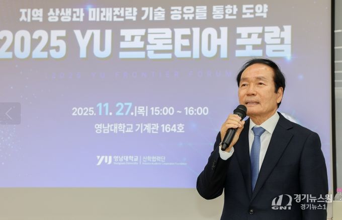 [경기뉴스원/경기뉴스1] | 의성군수 김주수는 11월 27일 영남대학교에서 열린 ‘YU 프론티어 포럼’에서 영남대학교 부총장, 처실장 등 50여 명을 대상으로 의성군 미래 신성장산업을 주제로 특강을 진행했다.