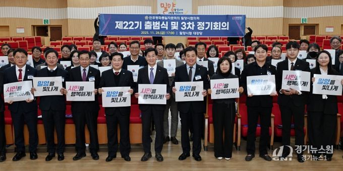 [경기뉴스원/경기뉴스1] | 민주평화통일자문회의 밀양시협의회(회장 김영진)는 지난 28일 시청 대강당에서 ‘제22기 출범식 및 2025년 3차 정기회의’를 개최했다.