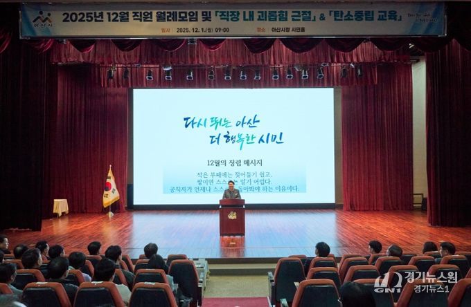 [경기뉴스원/경기뉴스1] | 아산시는 1일 시청 시민홀에서 12월 직원월례모임을 열고 올 한 해 주요 시정 성과를 공유하며 연말 마무리와 내년도 시정 방향을 논의했다.