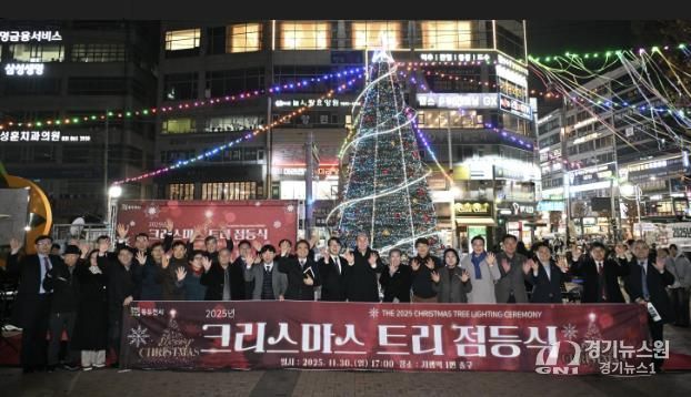 [경기뉴스원/경기뉴스1] | 동두천기독교연합회는 지난 11월 30일 오후 5시, 지행역 1번 출구 앞 광장에서 '2025년 크리스마스 트리 점등식'을 개최했다.