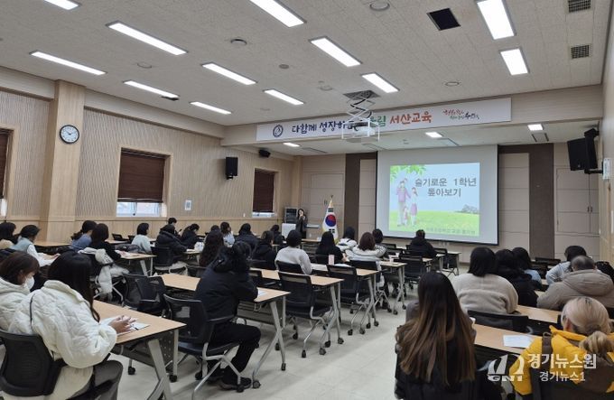 [경기뉴스원/경기뉴스1] | 충청남도서산교육지원청은 지난 3일 어울림실에서 2026학년도 초등학교 입학을 앞둔 자녀를 둔 학부모를 대상으로 예비초 학부모교육을 진행했다.