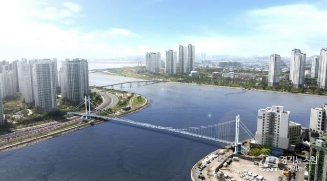 [경기뉴스원/경기뉴스1] | 서해안 대표 명소인 시흥 월곶포구의 해상 경관을 배경으로 배곧동과 월곶동을 연결하는 현수교 형태의 횡단보도교가 건립된다.