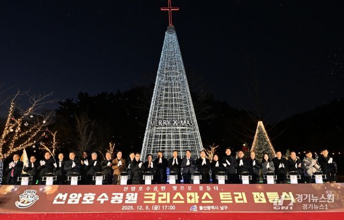 [경기뉴스원/경기뉴스1] | 울산 남구는 5일 선암호수공원 녹색의 숲 잔디마당에서 ‘2025 선암호수공원 크리스마스 트리 점등식’을 열고 화려하게 불을 밝혔다.