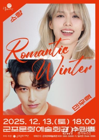 [경기뉴스원/경기뉴스1] | 군포문화재단은 오는 12월 13일 오후 6시, 군포문화예술회관 수리홀에서 연말 기획공연 “소향×민우혁 콘서트 'Romantic Winter'”를 개최한다.