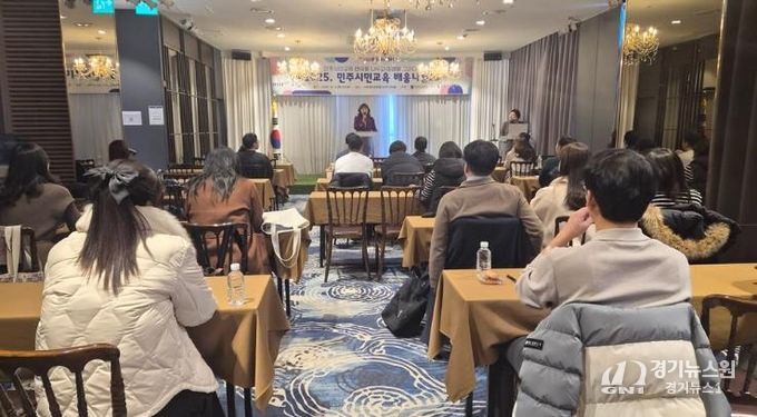 [경기뉴스원/경기뉴스1] | 충청북도교육청은 9일 오후, 오창 제이원 호텔에서 도내 교원 및 교육전문직 60여 명이 참석한 가운데 민주시민교육 배움나눔회를 진행했다.