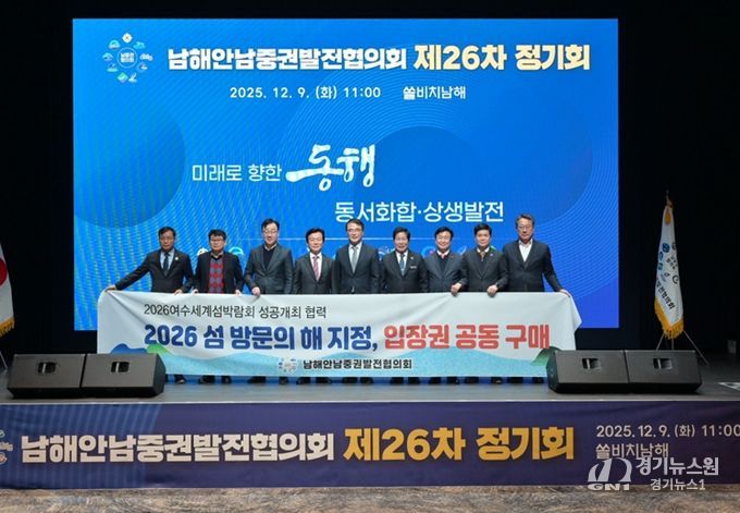 [경기뉴스원/경기뉴스1] | 여수시는 9일 경남 남해군 쏠비치남해에서 ‘남해안남중권발전협의회 제26차 정기회’가 개최됐다고 밝혔다.
