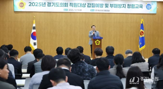 [경기뉴스원/경기뉴스1] | 경기도의회는 9일 오전 의회 대회의실에서 전 직원을 대상으로 ‘갑질예방 및 부패방지 청렴교육’을 실시했다.