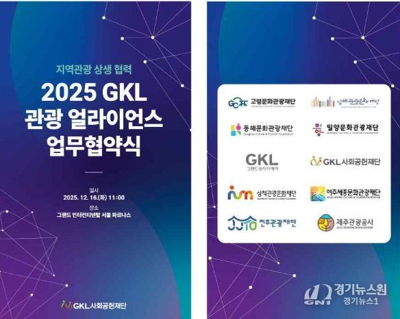 [경기뉴스원/경기뉴스1] | 여주세종문화관광재단은 지난 12월 16일 GKL 사회공헌재단이 주관한 ‘GKL 관광 얼라이언스 업무협약식’에 참석하여, 전국 8개 지역관광 전담기관과 함께 문화·관광 분야 공익사업 협력을 위한 업무협약을 체결했다고 밝혔다.